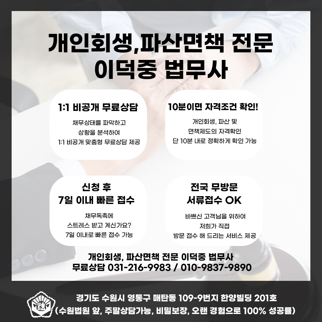 수원에서 개인회생·파산면책은 무조건 이덕중 법무사